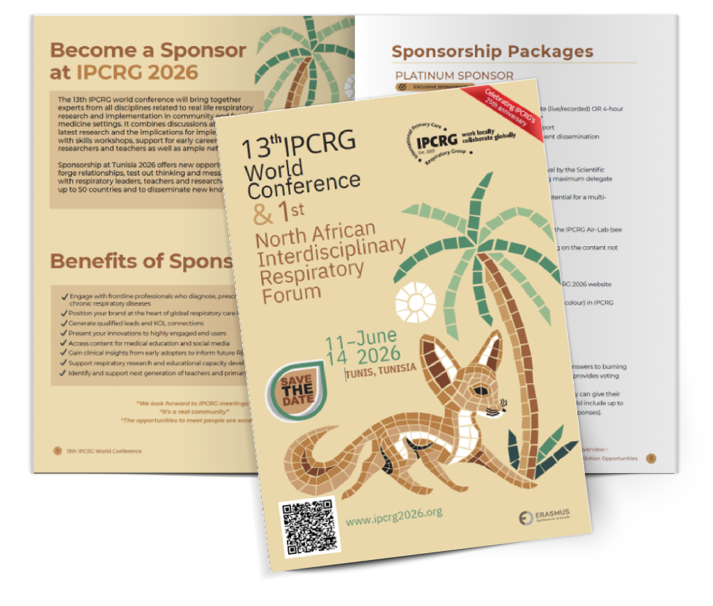 We are pleased to invite related industries and organisations to participate as sponsors and/or exhibitors in the 13th IPCRG World Conference & 1st North African Interdisciplinary Respiratory Forum.